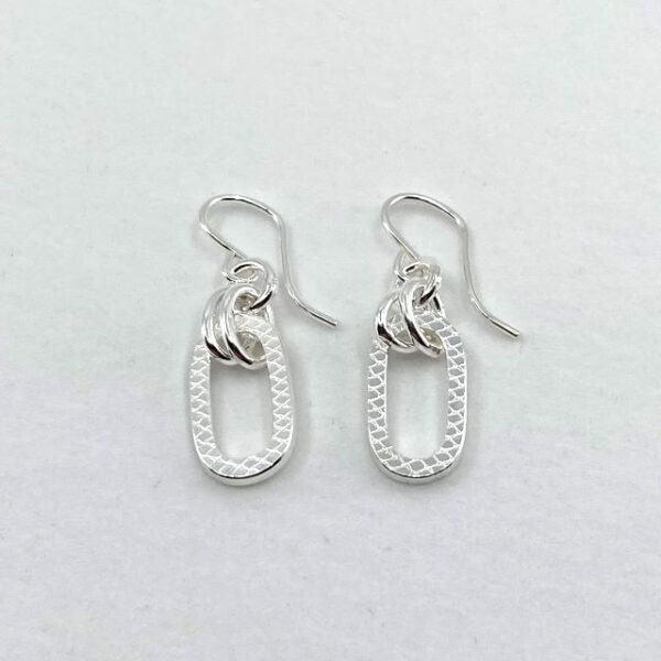 The Bounce Earrings consist of a textured oval link. These links are connected with polished oval links and have sterling silver earwires.