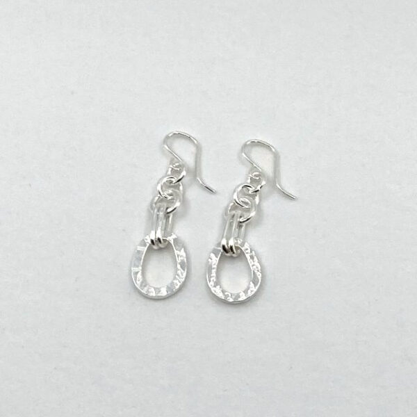 The Steer Earrings consist of a textured fancy link, topped with polished oval links. They are connected with polished oval links and have sterling silver earwires.